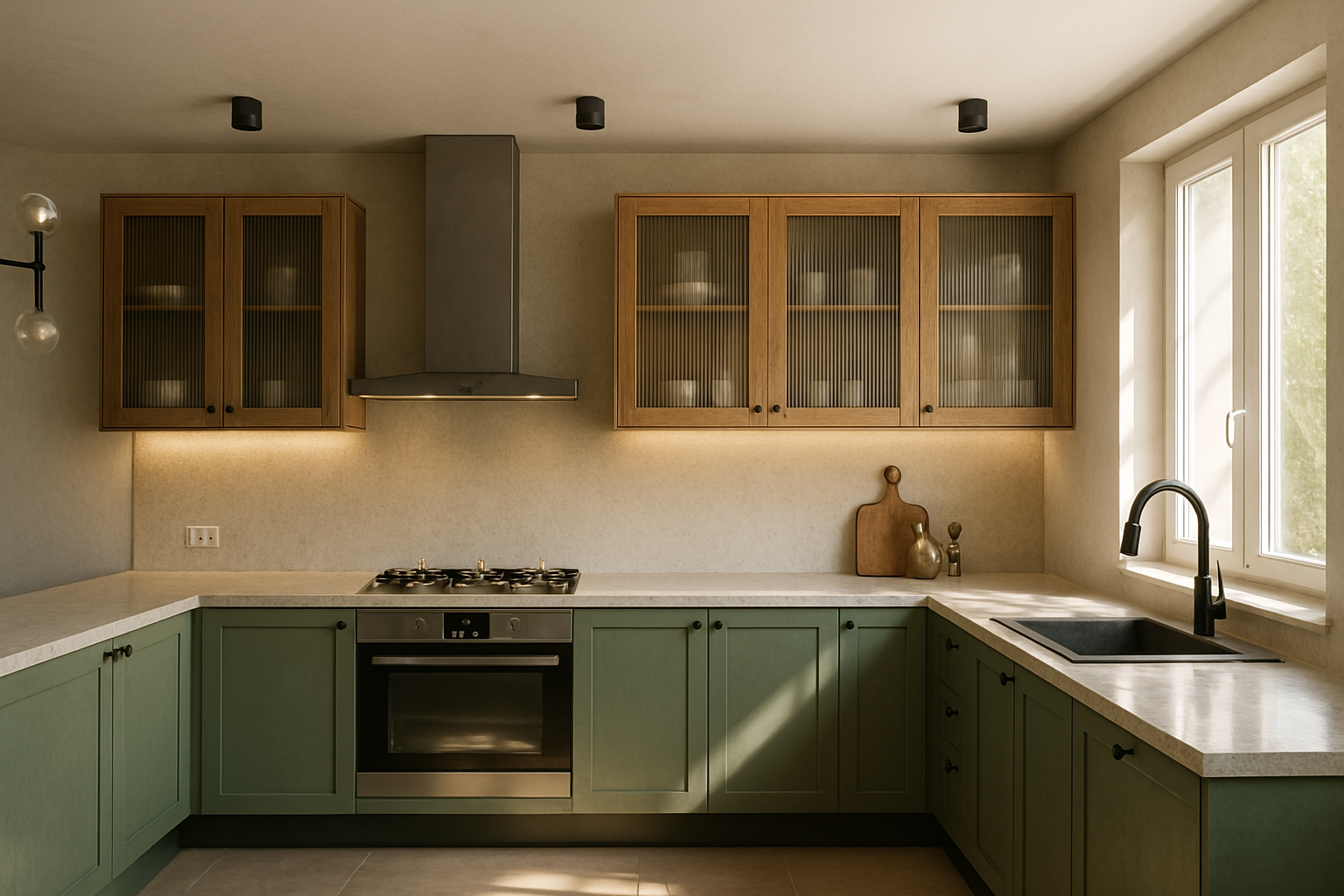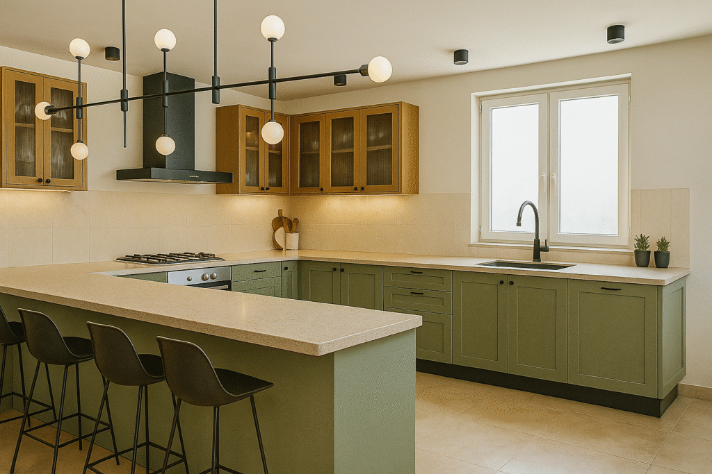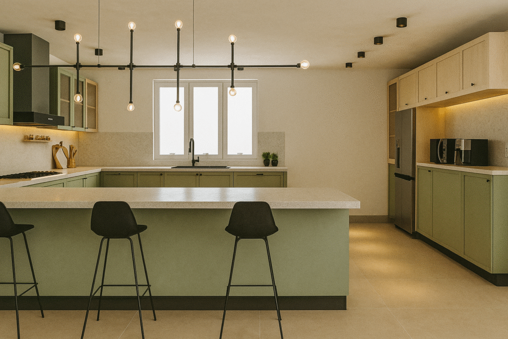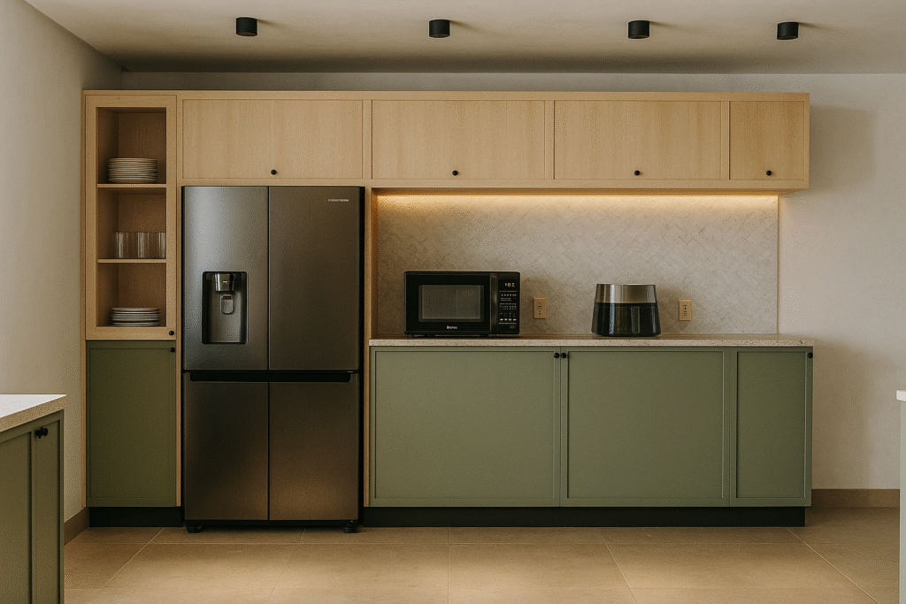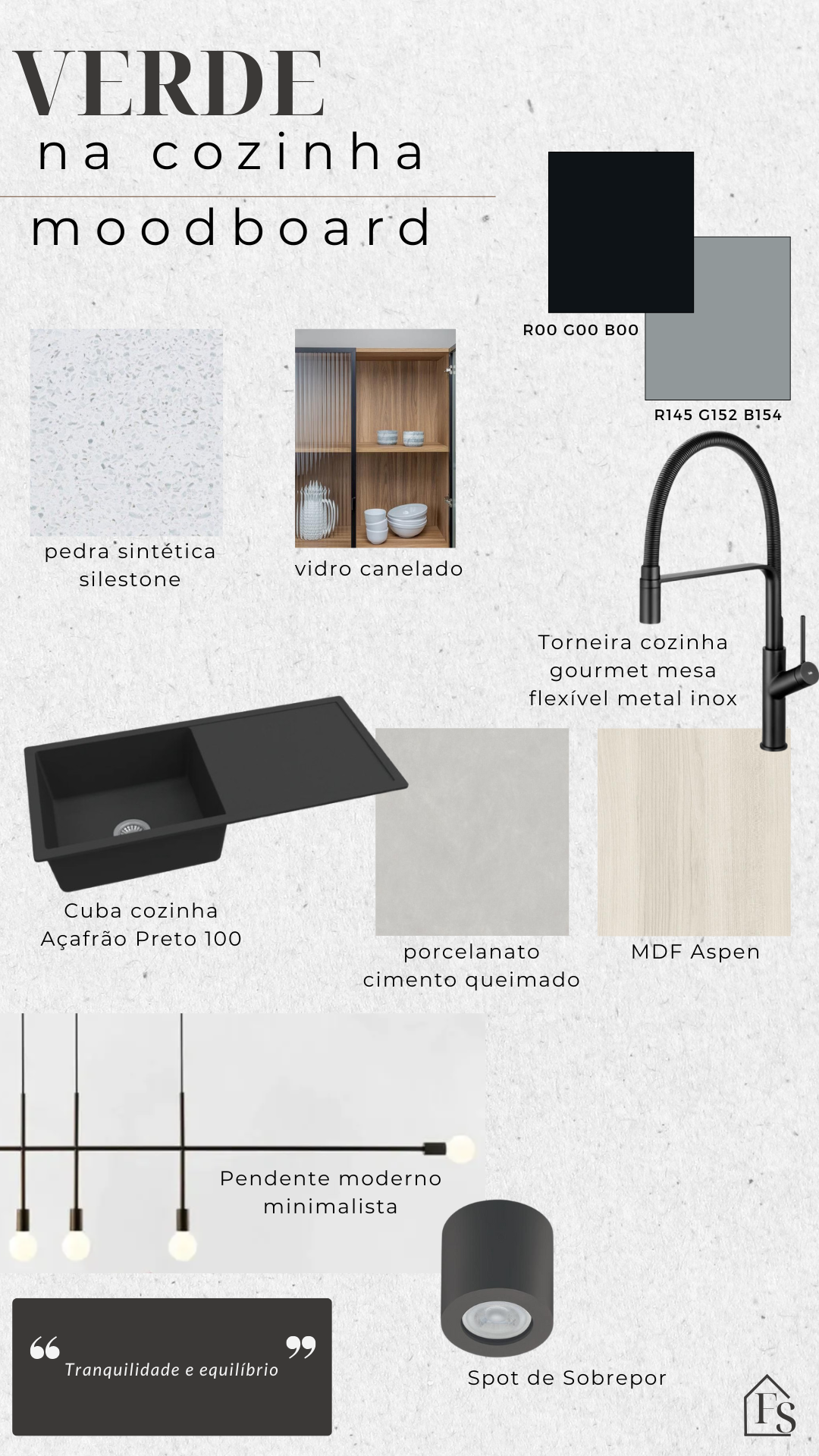 Uma inspiração de cozinha nada tradicional para quem ama passar mais tempo do dia no preparo dos alimentos! A ideia foi trazer a cor verde que simboliza a natureza, também associada ao equilíbrio e a saúde, proporcionando a sensação de descontração e serenidade, além de trazer o sentimento de relaxamento na hora de preparar as refeições.